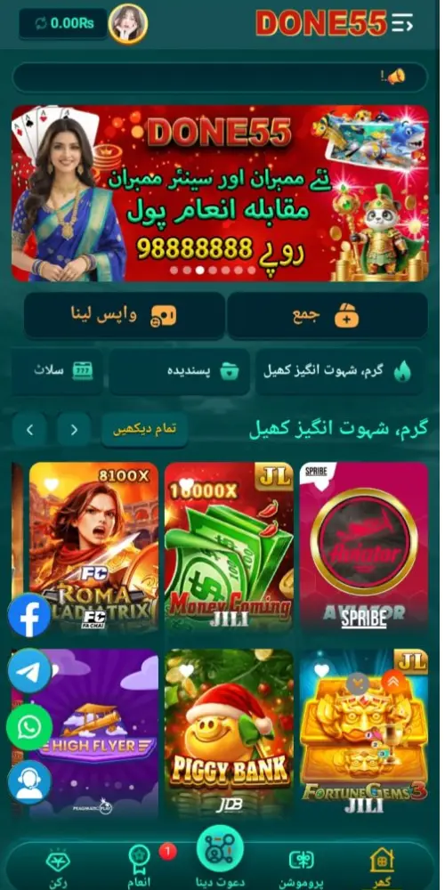 Game Done 55 is an Android application and a mobile game, which provides its users with the possibility to play multiple mini games and prediction games, as a way of getting an opportunity to win money in the real world. It is not a regular game and is an interactive game in the sense that he has a chance to win money as he can deposit money, play games such as the prediction games, cards, and slots, and bring the money back in local wallets such as JazzCash and EasyPaisa.